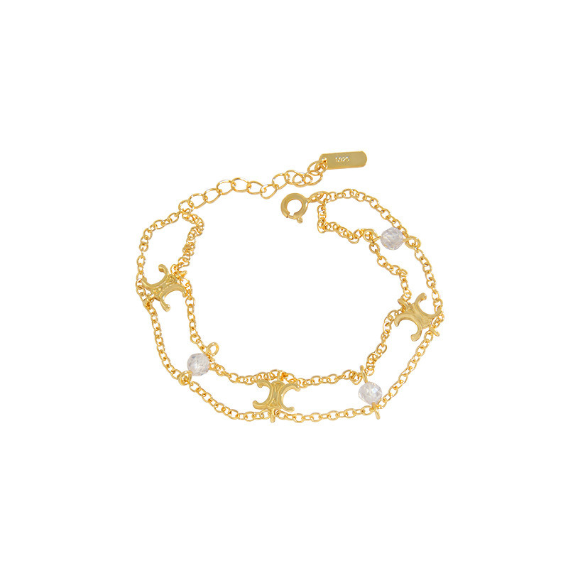 s925 sterling silver doublelayer pearl heart anklet trendy chic bracelet